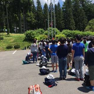 なかのビレジにつきました。バスの車両のよさと運転手さんのテクニックで、全員元気いっぱいにお弁当をたべ、部屋で荷物整理。いよいよ里山入門です。