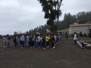 昨夜は、キャンプファイヤーを楽しみました。その後、雨。今朝は、夜に降っていた雨もあがました。予定通り、登山です。