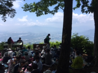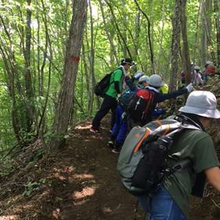 いよいよ登山です。見送りをしているのは、お散歩コースの子どもたちです。お散歩コースも楽しいメニュー考えています。山登りの苦手な友だちをサポートするために、しんがり4人組が大活躍です。下山もみんなを支えたいと、頑張る4人組です。