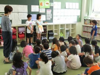 今朝は図書委員の児童が1〜2年生のクラスとくるみ学級を訪れ、絵本の読み聞かせを行いました。