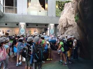 梅雨の間の晴れた日、4年生は、バスに乗って社会科見学に出発しました。初めは中央清掃工場で、ゴミの処理についてのお話を伺ったり、施設を見学したりし、しっかり学べました。2番目の見学地、水の科学館では班行動で見学。限られた時間、館内を一生懸命見て回っています。