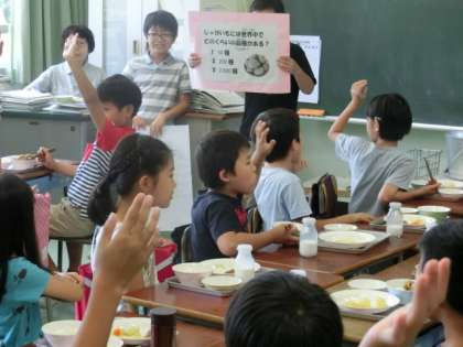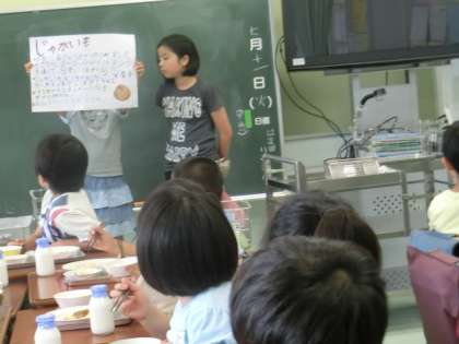 食べながら静かに聞けばいいのですが、一生けん命に説明してくれるので、夢中で聞き入って箸が止っている子もいます。