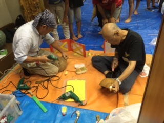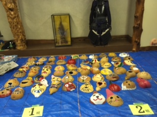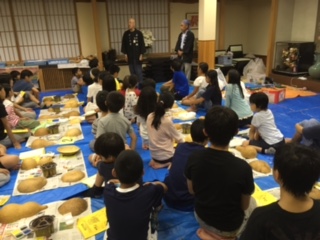 夕食後は、ふくべのお面作りです。説明を聞いて、思い思いに作りました。ふくべ洞の方に穴を開けていただき、乾かしてできあがり。仕上げをしていただいたものが、夏休み中に学校に届きます。楽しみです。