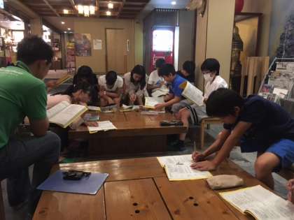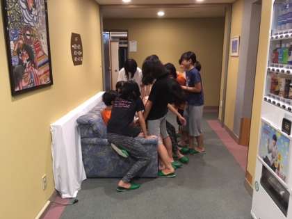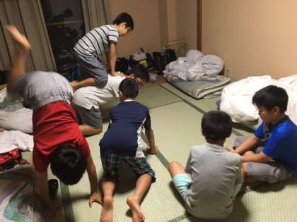 自由時間に楽しそう。班長会議もおわりました。どの子も頑張っています。今のところほめられることばかりです。誰も具合の悪い子はいません。心配しないで!と言っています。