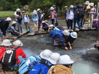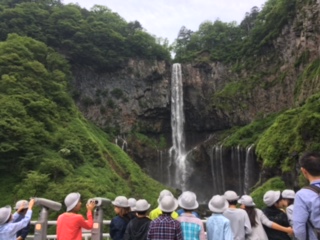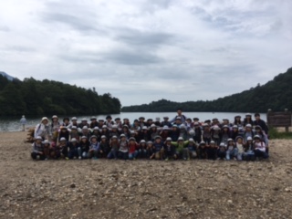 朝の雨もやみ、華厳の滝の見学もできました。湯元の源泉で、10円を温泉につけて、色が変わるか試しました。湯ノ湖湖畔で、全員の集合写真をうつしました。