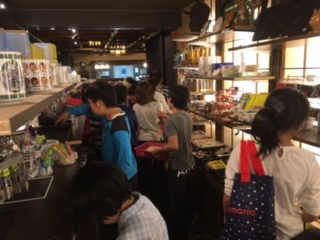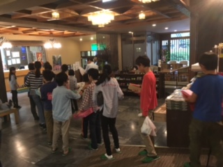 おみやげタイムです。それぞれの思いと金額との葛藤。優しい思いいっぱいのおみやげをお楽しみに。夕食後は、肝試しです。