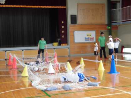 午前中は小学校で、午後は中学校で研究授業が行われ、授業後は中学の体育館で研究経過の報告と、講師による講演が行われました。