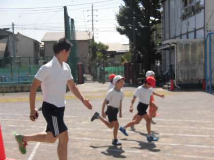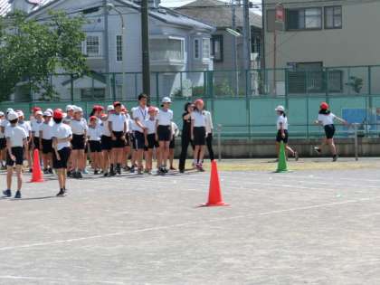 第一部は、体育館でご自身の生い立ちから今日の活躍までのお話を全校児童にしていただき、第二部では6年生が校庭で走り方をコーチしていただきました。