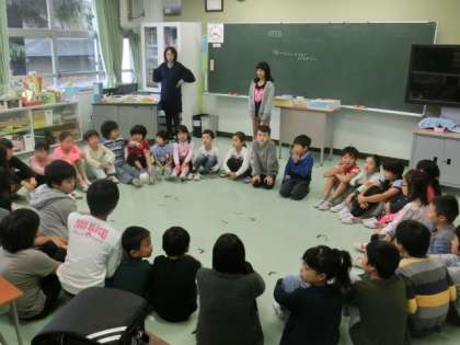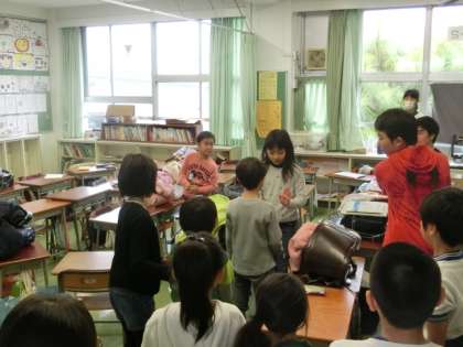 外で遊ぶことはできませんが、6年生は雨天用の遊びも準備済み。伝言ゲームや蛇じゃんけんなど、様々な遊びを一緒に楽しみました。