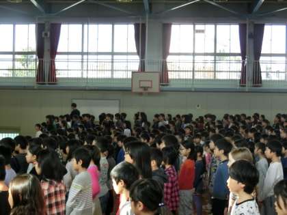 今朝の児童会では、音楽集会が行われました。"今月の曲"としてずっとお昼に流れていた「千の風になって」をみんなで歌いました。