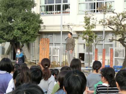 寒くなってきました。校長先生から「手をポケットに入れて歩かないように」とお話がありました。