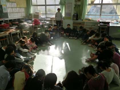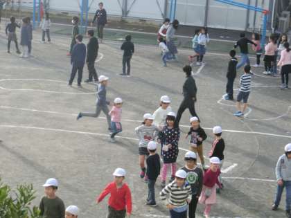 今朝はなかよし班あそびの日です。6年生がリーダーになって、1〜6年生が合同で遊びます。