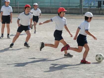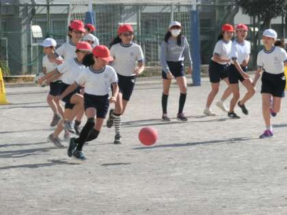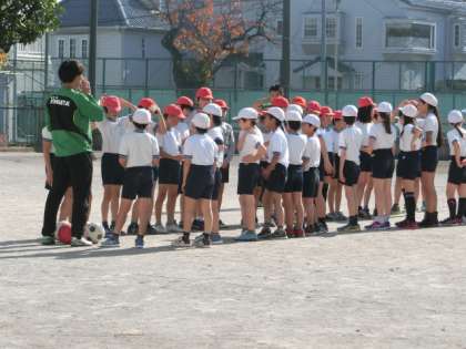 今日はプロサッカーチーム「東京ヴェルディ」のコーチお二人が来て、5年生にサッカーを指導してくださいました。みんなが楽しんで練習できるように、練習法やゲームルールなどに様々な工夫がありました。