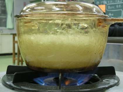川場移動教室で飯盒炊さんは経験していますが、ガラスの鍋なので炊けていく様子がよく分かります。