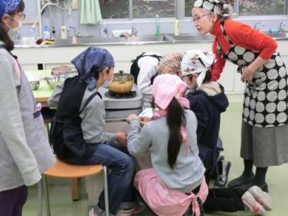 5年生は現在、家庭科の授業でお米を炊いています。