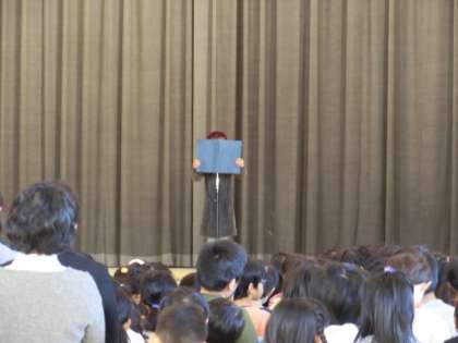 今日は終業式です。校長先生からは、「2学期よく頑張りました。先生たちは、みなさんのよいところをたくさんみることができ、とてもうれしく思っています。みなさんも、自分のよいところを見つけてください。」という宿題が出されました。