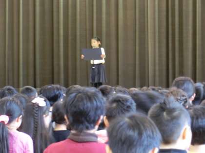 2年生の代表児童は、「3学期は字をうまく書けるように頑張りたい」と発表してくれましたが、その理由と上手くなるための手立てまで丁寧に話してくれました。