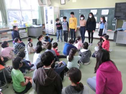 今朝は「なかよし班遊び」が行われ、1〜6年生が一緒に遊びました。