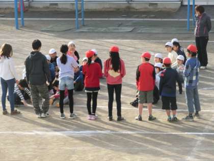 すでに三学期。5年生がリーダーを務め、班をまとめたりルールを説明したりしてくれました。