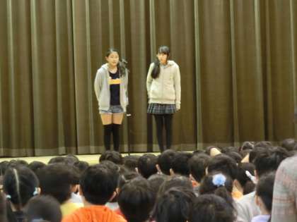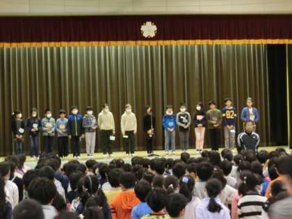 今朝は計画委員の5年生が、先週行われた代表委員会の報告と、ユニセフ募金の募金額を発表してくれました。