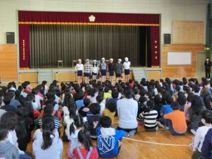今朝は卓球クラブと、ゲームクラブの発表が行われました。