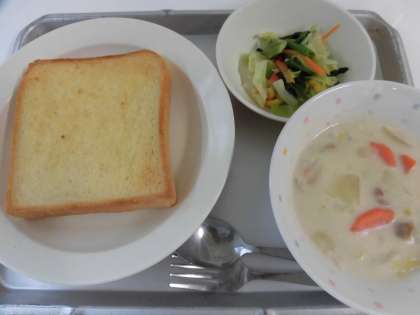 献立 八丈レモントースト、白菜のクリーム煮、ほうれん草サラダ、牛乳