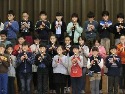 今朝は4年生がリコーダーで「もののけ姫」を演奏してくれました。