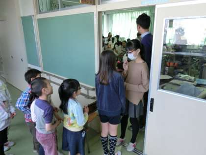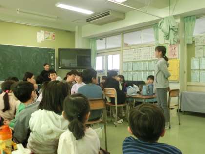 5年生が中心になって教室の準備が行われ、用意ができると1年生が6年生を迎えに行きました。