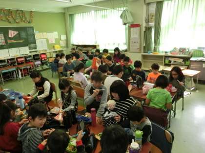 なかよし班の解散式に合わせて、なかよし班のみんなで最後に一緒に食事をしました。