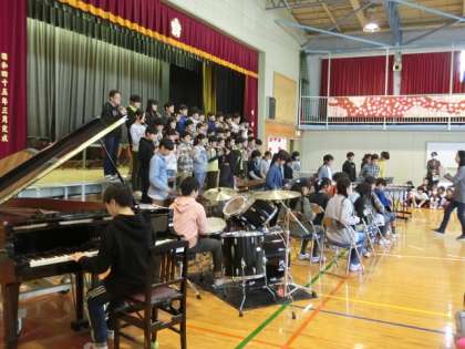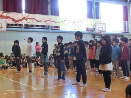 最後は全員で「世界に1つだけの花」を元気よく歌って、6年生の門出をお祝いです。