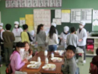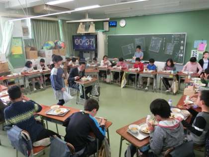 6年生でなくても、クラス最後の給食ということで、いつもとは違う形で給食を食べる学級もありました。