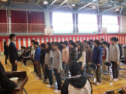 1〜4年生の下校後、高学年は卒業式の予行練習を行いました。