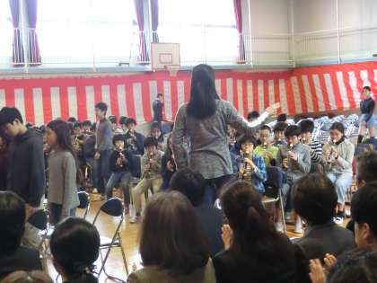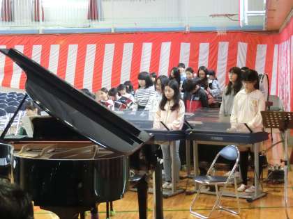 6年生の歌声は見事でした。5年生の演奏や態度も非常に立派です。