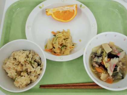 献立 高菜めし、タイピーエン、切干大根サラダ、デコポン、牛乳