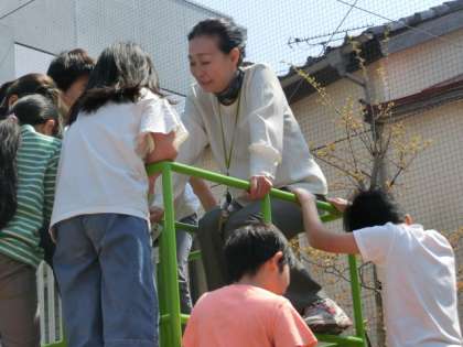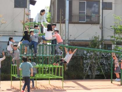 今日も子どもたちがジャングルジムに殺到すると、なんと頂上はすでに校長先生が陣取っていました。