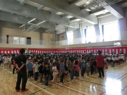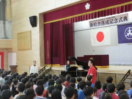 校歌の練習では、「最後はステージに向かって投げ込むように!」という先生のアドバイスで、みんなの声はとてもきれいに響いていました。
