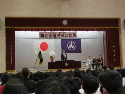 新校舎落成記念式典が行われ、区長をはじめ、関係者や建設に携わった多くの方々にご臨席いただきました。