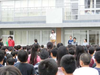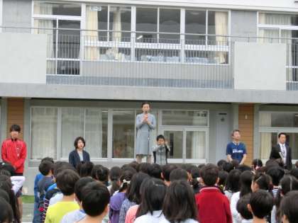 今日は校長先生から、先日の落成式でみんなの態度が非常に立派だったことや、多くのお客様からお褒めの言葉をいただいたことなどをお話ししてくださいました。