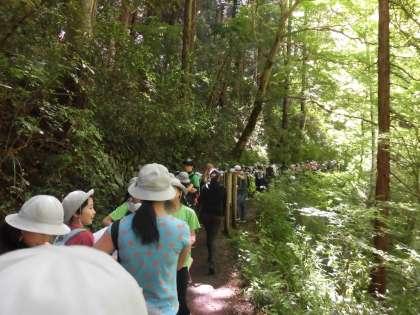爽やかな新緑の中を、みんなで登山しました。