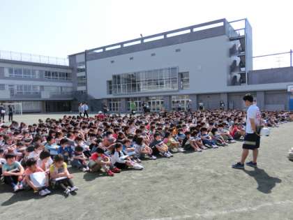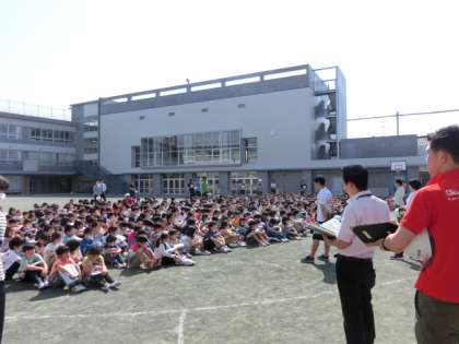 避難訓練が行われました。1年生も参加しましたが、全校児童が口を閉じ、静かに避難できました。