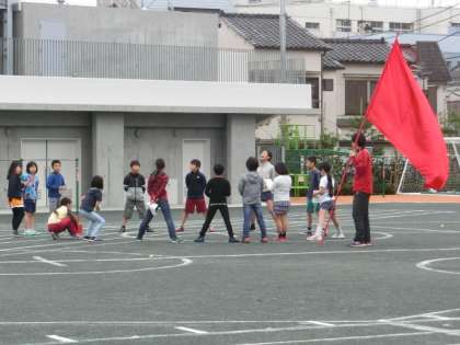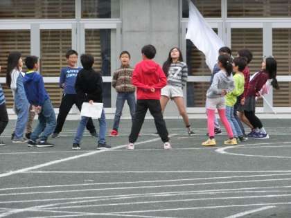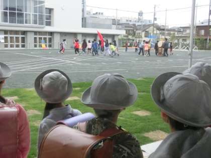 朝から大きな声で練習する様子を、登校してきた児童たちも熱心に見ています。本番でのかっこいい応援が、今から楽しみですね。