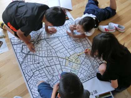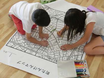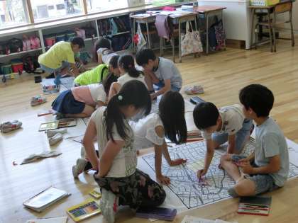 3年生は先日の町たんけんをもとに、「町たんけんマップ」を作っています。見てきた街の様子を思い浮かべながら、マップをみんなで作っていきます。