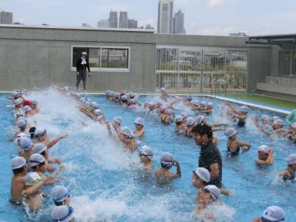 みんな大きな声で「よろしくお願いします」と挨拶してからプールに入りました。