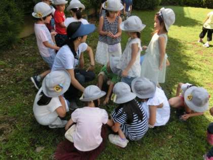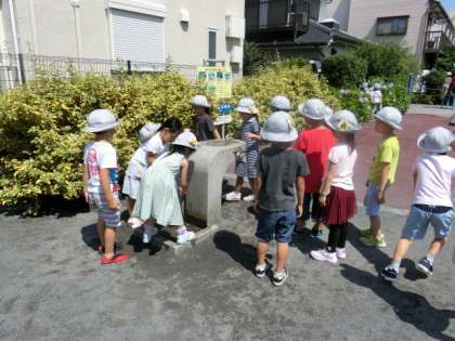 カルガモ公園やGoGo公園などをみんなで順番に巡り歩き、公園の様子を見たり、ダンゴムシを拾ったりしました。