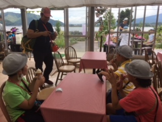 河口湖を散歩しました。大石公園で、ソフトクリームをたべました。ぼくは、濃厚ミルクでした。夕飯は、カレーが、一番おいしかった。(by T)