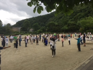 ちょっと曇り、青空もきれいです。山がいっぱい。きょうは、ハイキングです。(by E)