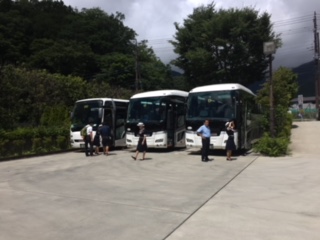 きのうは、子ども会でした。今朝は晴れていたのに、雨がふりました。虹もみました。このバスに乗って帰ります。これから、河口湖総合公園にいきます。(by F)