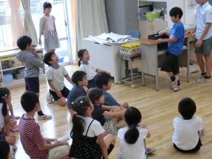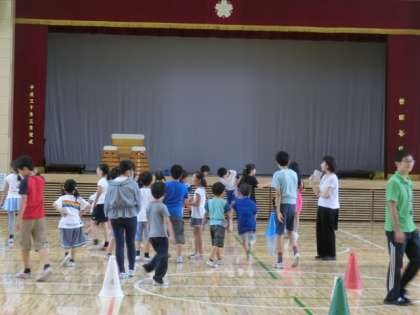 6年生が中心になって、班ごとに全学年で一緒に遊びます。