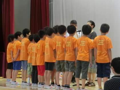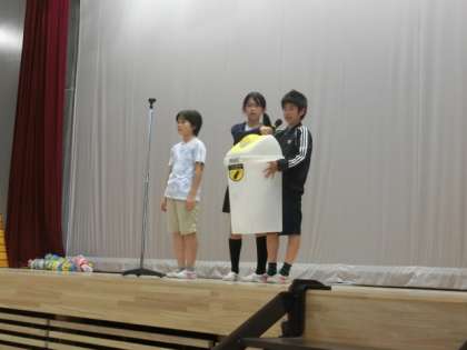 今朝はサッカーチーム「北沢キッカーズ」の表彰が行われました。