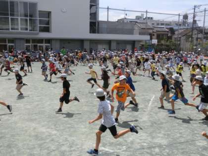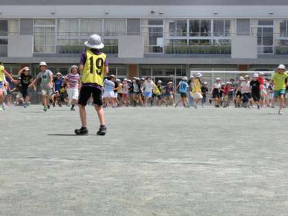 低学年と高学年に分けてゲームをしましたが、それでも1回につき300人が突進する迫力はすごいものです。